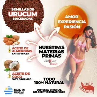 Óleo bronceador almendras dulces de coco orgánico y urucum (150 ml ) 100% natural